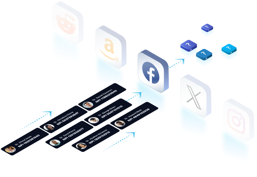 By consolidating NPI-Level access to a wide variety of Social, Professional and Consumer networks - we are able to maximize the reach and engagements of your HCP campaigns.